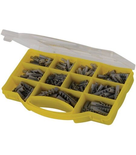 Chevilles en nylon ultra-robustes avec 2 sens d'expansion. Dispositif de sécurité anti-rotation garantissant une parfaite tenue. Adaptées pour être utilisées dans béton et maçonnerie. Tailles assorties : 4, 5, 6, 7, 8, 10 and 12 mm. Coffret compartimenté très pratique. ...