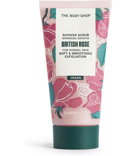 Gommage douche BRITISH ROSE. Exfoliant corporel. Type de peau: Normale. Les tendances: Rose. Green beauty: Végétalien, Cruelty Free ...