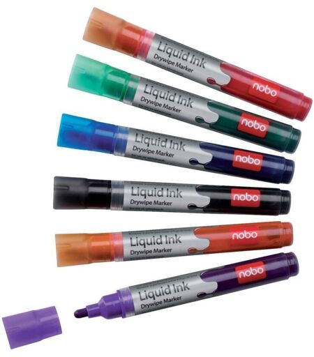 Liquid Ink 1901419 Set de marqueurs pour tableau blanc noir, rouge, vert, bleu, orange, violet 6 pc(s) - Nobo