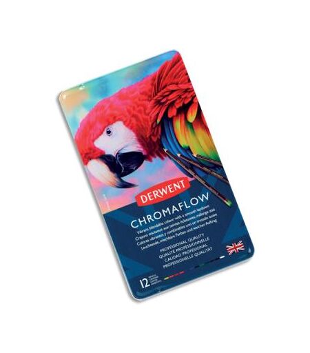 Boîte métal de 12 crayons de couleurs Derwent Academy ''CHROMAFLOW'' - Application lisse et veloutée - Mine de 3,5
