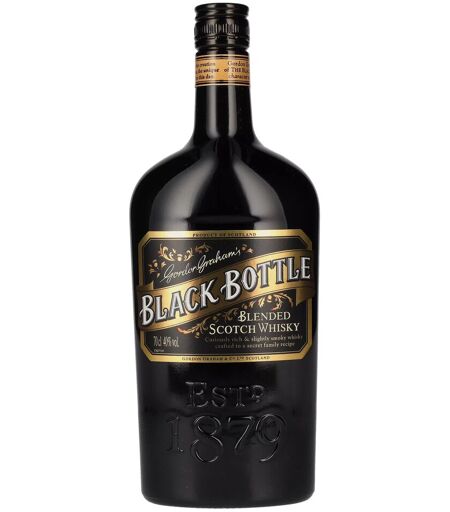 Le Black Bottle Blended Scotch Whisky est un blended Scotch Whisky exceptionnel d'une teneur en alcool de 40% vol. et d'une contenance de 0,7 litre. Ce whisky est élaboré à partir d'un mélange minutieux de whiskies single malt et de whiskies de grain Couleur : jaune doré avec des reflets ambrés. Nez : Arômes de fumée de tourbe, de miel, de vanille et d'un soupçon de chêne, accompagnés d'une légère note fruitée. Goût : Corsé et équilibré, avec un mélange de notes douces de caramel et de miel, co ...