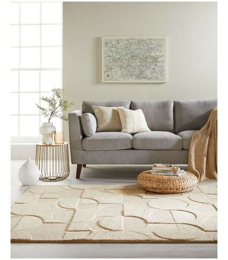Flair Rugs - Tapis géométrique en laine design rectangle Gigi Beige 120x170