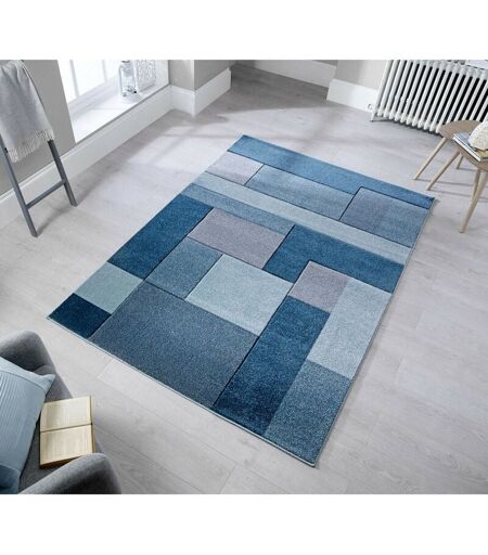 Flair Rugs - Tapis cubisme courtes mèches design pour salon Cosmos Bleu jeans 80x150