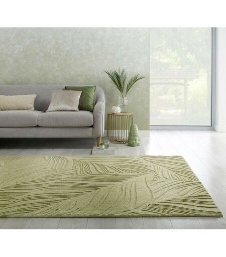 Flair Rugs - Tapis en laine effet 3D uni salon Lino Leaf Sauge 120x170