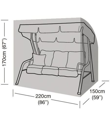 Aspect Coloris Noir Matériau principal Polyester haute qualité Matériaux secondaires PVC (envers) Dimensions Hauteur (en cm) 170 Longueur (en cm) 220 Profondeur (en cm) 150 Autres caractéristiques Compatibilité Pour balancelle 3 places jusquà 220 cm de longueur - 150 cm de largeur et 170 cm de hauteur Informations complémentaires Cordon de serrage pour maintenir la housse en place Protection Anti UV Intempéries Housse de protection balancelle 3 places ...