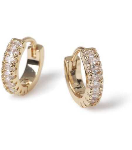 Adorn your ears with this stunning gold plated huggie hoop earrings, featuring beautiful cubic zirconia stones. Wear in your lobe or helix. Suitable for healed piercings only. 90% Brass, 10% Cubic Zirconia. ...