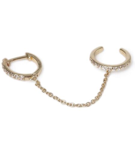 Want to create an ear stack with minimal piercings? This gold plated huggie hoop chain link ear cuff is the perfect way to accessories your look this season, featuring beautiful cubic zirconia stones. Wear the stud in your lobe and put the ear cuff on your helix. Suitable for healed piercings only. 90% Brass, 10% Cubic Zirconia. ...