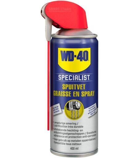 WD-40 Specialist Graisse en Spray contient la formule originale du produit multi-usage WD-40. Ce lubrifiant contient également des additifs anti-usure et résiste à des pressions très élevées. La texture en gel assure une lubrification longue durée et une excellente protection contre la corrosion et l'oxydation. Grâce à son adhérence forte et ses propriétés d'étanchéité, le produit ne coule pas. Grâce à la formule anti-goutte, il reste en place même sur les surfaces verticales ! WD-40 Specialist Graisse en Spray est très résistant à l'eau et peut être utilisé entre -20 °C et +115 °C. Utilisez-le sur des surfaces métalliques nécessitant une lubrification longue durée et une protection contre la corrosion. Il est particulièrement recommandé pour les applications extérieures. Le produit convient également à tous les métaux. ...