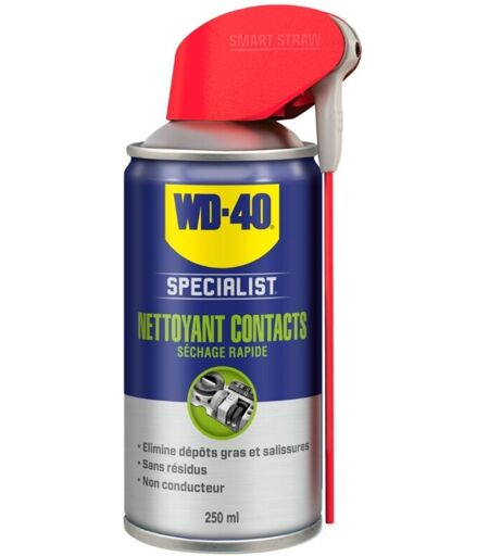 Type de nettoyant = Nettoyant de contact lubrifiant Nom commercial = WD-40 SPECIALIST Type de conditionnement = Aérosol Contenance = 250 ml ...