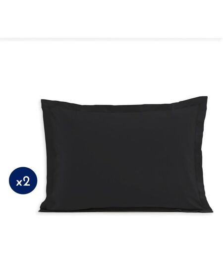 Home Linge Passion - Lot de 2 taies rectangulaires coton 57 fils Noir 50x70 cm