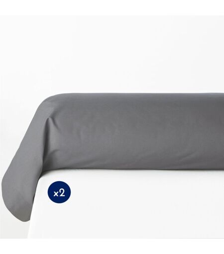 Home Linge Passion - Lot de 2 taies de traversin coton 57 fils Gris Foncé 85x185 cm