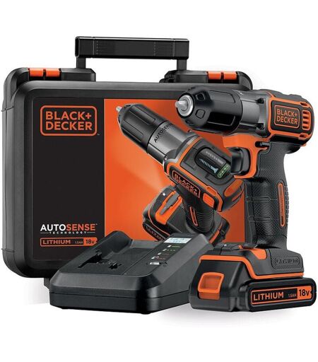 Black & Decker Perceuse sans fil Autosense 16/28 Nm - black+decker - avec 1 batterie 18V 1,5Ah - chargeur - coffret - ASD18K-QW