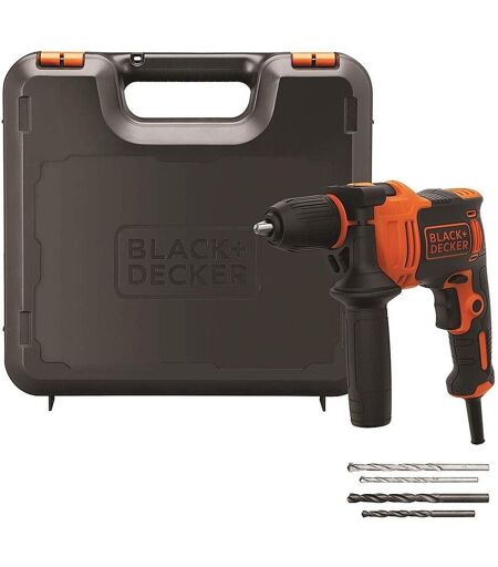 Black + Decker Black and Decker - Perceuse à percussion filaire 710 W 47600 cps/min dans un coffret avec 4 forets de perçage - BEH710K-QS