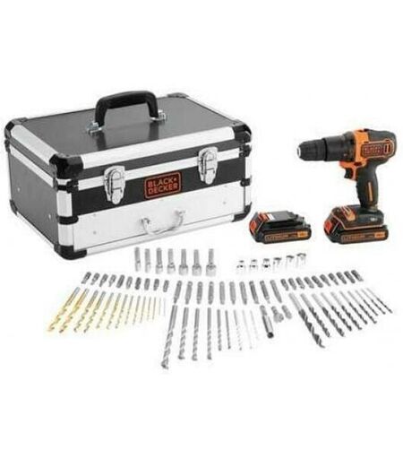 Black & Decker Trapano avitateur de percussion avec batterie 18v double en valigetta premium avec casset de 80 accessoires en deux cadeaux extrables bdc718as2f-qw