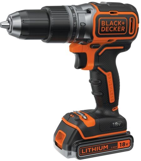 Black + Decker Perceuse sans fil à Percussion BLACK & DECKER Brushless 18V + 2 Batteries Lithium + Chargeur