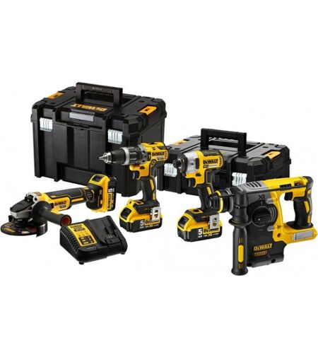 DeWALT DCK422P3T Pack de 4 outils DCD796+DCH273+DCF887+DCG405+3 x 5,0 Ah+DCB1104