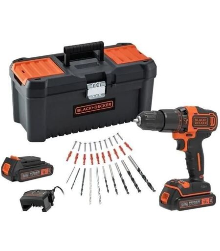 Black + Decker Perceuse à percussion sans fil 18V BLACK+DECKER - BDCHD18C2TA-QW ¿ Avec 2 batteries 18V ¿ 30 accessoires inclus