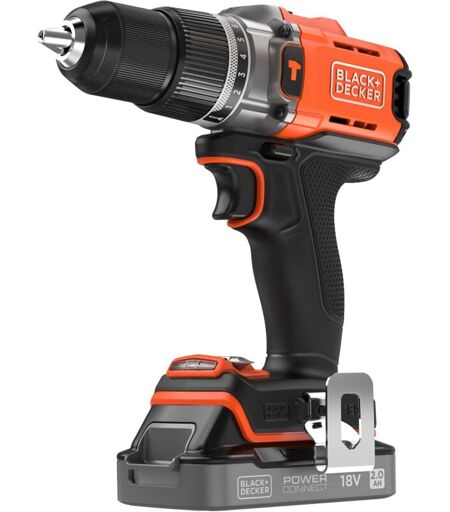 Black & Decker Black+decker Outillage - Perceuse à percussion sans fil 18V, 1 batterie Li-Ion 2,0 Ah, chargeur BCD383D1XK-QW