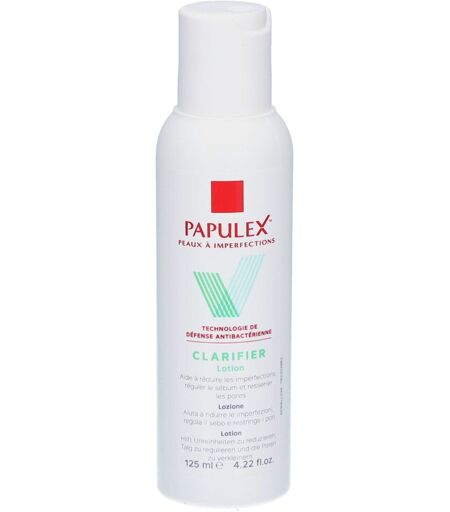 Papulex Lotion est conçue pour les zones étendues du corps qui possèdent des imperfections. En effet cette lotion va favoriser l’élimination des boutons en permettant la régulation de la sécrétion de sébum sur le dos, le torse ou même la barbe.Elimine les boutons et régule la sécrétion de sébum des zones étendues et pileuses comme : le dos, le torse et la barbe.BénéficesNicotinamide 4% : Purifie l’aspect de la peau (Action anti-inflammatoire).Actif AAB (Anti-Adhésion Bactérienne) : Inhibition de l’adhésion de P. acnes aux cornéocytes, et évite la prolifération du P. acnes sans développer des résistances bactériennes.Zinc PCA 1% : Effet séborégulateur8% AlcoolSans AHASans parfumNon photosensibilisant.IndicationPeaux grasses à imperfectionApplicationÀ utiliser matin et/ou soir.IngrédientsAqua, Alcohol, Niacinamide, Hamamelis Virginiana, PEG-6 Caprylic/Capric Glycerides, Zinc PCA, Lauryl Glucoside, Propylene Glycol, Diazolidinyl Urea, Citric Acid, Phtalate. ...