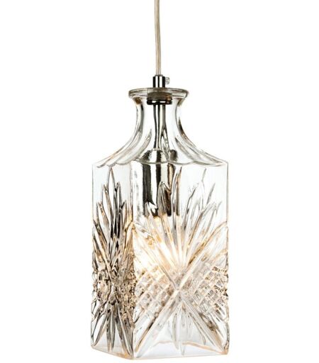 Firstlight Decanter - Suspension à 1 ampoule au fini chrome, verre décoratif transparent, E14 Fini: Chrome, verre décoratif transparent Indice de protection IP: IP20 Hauteur (cm): 25 Hauteur max (cm): 120 Diamètre (cm): 100sq Nombre de lumières: 1 Type de lampe: E14 Dimmable: Oui Puissance (max): 40 Ampoule incluse: non ...
