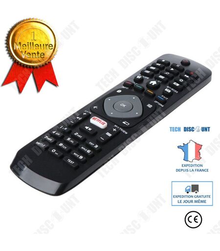 Nom du produit: Télécommande TV Smart pour PHILIPS 4K--DQ FRANCE Catégorie: TÉLÉCOMMANDE TV Type de produit: Convient à la télécommande Philips TV Matériau de la coque: ABS Distance de contrôle à distance: supérieure à 8 m (la distance réelle à distance dépend du modèle de votre téléviseur) Type de batterie: 2 * piles AAA (non incluses) Modèle applicable: Pour TV PHILIPS HOF16H303GPD24 NETFLIX Fernbedienung 398GR08BEPHN0011HL Taille: env. 20,3 * 5,3 * 1,6 cm / 8,0 * 2,1 * 0,6 pouces Poids du colis: 77 g Liste de colis: 1 * Convient à la télécommande Philips TV"" ""Matériau de la coque: ABS Distance de contrôle à distance: supérieure à 8 m (la distance réelle à distance dépend du modèle de votre téléviseur) Type de batterie: 2 * piles AAA (non incluses) Modèle applicable: Pour TV PHILIPS HOF16H303GPD24 NETFLIX Caractéristiques: -[Convient à la télécommande Philips TV]? Il s'agit d'une télécommande de remplacement pour PHILIPS HOF16H303GPD24 TV NETFLIX Fernbedienung 398GR08BEPHN0011HL. -[Réponse rapide]?Lorsque vous appuyez sur un bouton, la télécommande réagit immédiatement et permet à la télévision de terminer votre souhait rapidement. - [Distance de contrôle]? 8 m - La distance de télécommande est supérieure à 8 m (la distance réelle dépend du modèle de votre téléviseur). - [Long temps de travail]? 2 piles AAA lui permettent de fonctionner longtemps. -[ Le matériau ABS]? rend ce contrôleur portable et durable. Vous pouvez l'utiliser directement après avoir installé les piles. -[Entreprise et marque française TECH DISCOUNT]: Notre entreprise TECH DISCOUNT fabrique et vend ce produit de qualité supérieure par rapport aux produits de même type sur le marché (Même si les photos sont similaires, ils ne sont pas conçus de la même façon et les vendeurs n?offrent pas les mêmes services après-vente). Chaque produit subit un contrôle strict avant son expédition qui vous permettra de recevoir votre produit en excellent état. En cas de problème de qualité, nous effectuerons un échange gratuit sous 14 jours. Expédié depuis la France le jour même de la commande et vous la recevrez dans les meilleurs délais (contrairement aux autres vendeurs qui ne peuvent pas garantir le temps d'expédition ou qui expédient depuis l'étranger et dont service après vente est généralement insuffisant). Notre service après vente se tiendra à votre écoute pour vous répondre efficacement. -[A l?attention des autres vendeurs]: Ce produit est vendu exclusivement sous notre marque française TECH DISCOUNT. Il est interdit d'ajouter cette offre dans votre catalogue. Nous avons le certificat d?enregistrement de marque INPI ainsi que le brevet. Toutes les ventes de contrefaçon entraîneront l?ouverture d?une enquête ainsi qu?une poursuite en justice et la fermeture de votre boutique. Merci de votre compréhension. ...