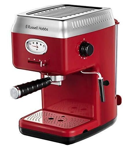 Russell Hobbs Hobbs Machine Expresso, Chauffage Thermobloc, Pompe à Pression 15 Bars, Baguette Vapeur pour Mousser le Lait Rouge 2825056 Retro