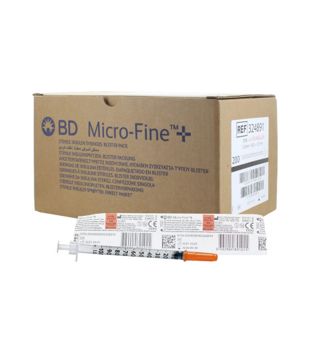 Les seringues à insuline Micro-Fine sont disponibles en plusieurs formats : 0,3 ml , 0,5 ml et 1ml. Chaque seringue comporte des graduations très visibles correspondant à des doses précises (unités) d'insuline. Le choix d'un modèle de seringue est réalisé en fonction du nombre d'unités d'insuline à prendre dans le cadre d'un traitement. La seringue BD Micro-Fine 0,3 ml comporte des graduations en demies-unités. Elle convient parfaitement aux doses de moins de 30 unités. Elle est dotée d'une aiguille courte de 8 mm. La seringue BD Micro-Fine 0,5 ml comporte des graduations en unités. Elle convient parfaitement aux doses de 30 à 50 unités. Elle existe en deux versions : une dotée d'une aiguille courte de 8 mm et une dotée d'une aiguille originale de 12,7 mm (recommandée pour de fortes doses d'insuline ou en cas de faible dextérité manuelle). La seringue BD Micro-Fine 1 ml comporte des graduations par deux-unités. Elle convient parfaitement aux doses de plus de 50 unités. Elle est dotée d'une aiguille originale de 12,7 mm. De manière générale, dans le cadre d'injections de faibles doses, il est plus facile de prendre une mesure précise avec une seringue de petit volume. Ces seringues stériles à usage unique bénéficient de la technologie Micro-Fine+, pour un plus grand confort du patient. ...
