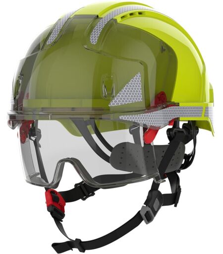 Casque de chantier double norme crémaillère EVO VISTAlens Dualswitch CR2 Jaune/Fumé ...