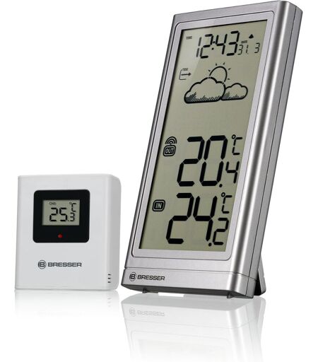 TWQ-Bresser Station météo sans fil avec capteur extérieur Meteo Temp, thermomètre avec affichage de la température pour l'intérieur et l'extérieur, prévisions météorologiques, avec pied pliable et su