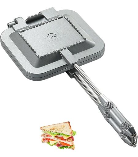 Campingmoon Grille-Pain De Camping En Aluminium Double Face Chauffant Pour Sandwichs Multifonction (Argenté)