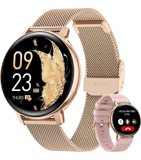 Montre Connectée Femme Avec Appel, 1.39"" Hd Smartwatch Santé Au Féminin, 120+ Modes Sportifs, 24H Fréquence Cardiaque, 24H Spo2, Sommeil, Calories Podometre Ip68 Étanche Android Ios Or Rose