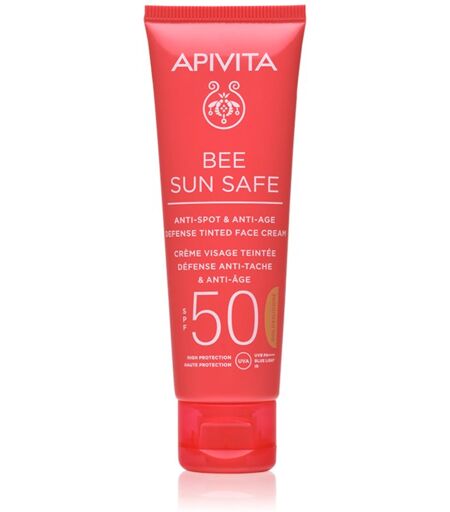 Apivita Bee Sun Safe Anti-Spot and Anti-Age Tinted Face Cream SPF50 crème teintée protectrice visage SPF 50 teinte Golden 50 ml