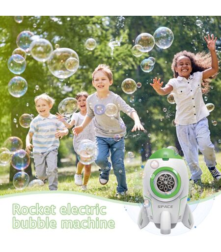 Bubble Machine - Automatic Bubble Blower, Rocket Shape, 3000 Bubbles Per Minute, Bubble Maker for Kids and Toddlers, Outdoor/Indoor Birthday Party Toys, Age 3+ Feature:Abundant Bubble - Our adorable Cosmic Rocket Bubble Maker toy quickly blows nearly 3000 colorful bubbles per minute through 10 rotating magic bubble vents, keeping kids happy chasing and exercising around the yard.LEAK-PROOF - No need to worry about spills and flips, the bubble maker is a sealed and leak-proof solution tank that children and toddlers can hold in their hands and watch the bubbles fly out of their hands.LONG TIME TO PLAY - You don't need to add refills as often as this bubble maker comes with a larger tank capacity of 120ml. Once fully filled with bubble solution, keep blowing bubbles for 30 minutes!EASY TO USE FOR CHILDREN - One button on/off at the bottom of the bubble blower, easy to operate, just pour in the bubble liquid and one button to turn on the power to make bubbles. Start or stop blowing bubbles anytime!KIDS FRIENDLY - Bubble Machine Outdoor Toys are kid and pet friendly. This is a great gift for birthday parties for kids ages 3-12, keep this bubble blower in your backyard and park a magical colorful bubble.Multi-scene use: suitable for indoor and outdoor use, with multiple use scenes, such as: Christmas, birthday, party, wedding, kindergarten, playground, park, etc. Specification:Material: ABS + electronic componentsColor: Blue/GreenGross weight: about 650gPower supply mode: rechargeable model (lithium battery 3.7V 500MAH) / battery model 5th battery (3*AA battery (not included))Product size: 13.7*12.8*19CM/5.39*5.04*7.48''Packaging box size: 12.7*12.7*21CMNote:Due to the different monitor and light effect, the actual color of the item might be slightly different from the color showed on the pictures. Thank you!Please allow 1-2cm measuring deviation due to manual measurement.1 x Bubble Machine1 x English Manual1 x Lanyard ...