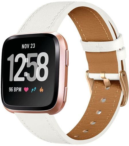Bracelet En Cuir Compatible Avec Fitbit Versa Bracelet/Fitbit Versa 2 Bracelet, Cuir Classique Band De Remplacement Compatible Avec Fitbit Versa/Versa 2/Versa Lite/Se, Blanc/Or Rose