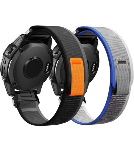 MODÈLES COMPATIBLES Bracelet 26mm pour Garmin Fenix 6X/Fenix 6X Pro/Fenix 7X/Fenix 7X Pro/Fenix 3/ Fenix 3 HR/Fenix 5X/Fenix 5X Plus/Fenix 8 51mm/Fenix 8 Solar 51mm, Instinct 2X, Descent MK1/Descent MK2/Descent MK3 51mm/Descent MK2i/Descent MK 3i 51mm, Tactix D a/Tactix 7N, Quatix 7X/Quatix 7X pro, D2 D a PX/D2 Charlie, Epix Pro 51mm, Enduro/Enduro 2. MATIÈRE NYLON RESPIRANTE la sangle de remplacement est fabriquée en nylon tissé doux pour la peau, ce qui la rend souple, légère, respirante et douce pour la peau, permettant à la sueur de s'échapper et évitant les irritations cutanées. Pour nettoyer une sangle en nylon, trempez-la dans une solution d'eau savonneuse douce, z-la avec une à dents à poils souples et rincez-la à l'eau pour la sécher. FLEXIBLE Le bracelet réglable de la fenix 6 pro s'adapte aux poignets de 190 mm à 240 mm. Il peut être librement ajusté en fonction de la taille du poignet. Confortable à porter et facile à enlever. INSTALLATION RAPIDE 26MM Aucun outil n'est nécessaire ! Le design Quickfit rend l'installation très facile, il suffit de cliquer et de retirer le bracelet, c'est fait ! Vous avez ainsi l'assurance que votre montre est bien fixée à votre poignet. LE SERVICE À LA CLIENTÈLE Nous p ttons à nos clients des produits et des services de la plus haute qualité. Si vous avez des questions ou des suggestions concernant l'article que vous avez reçu, n'hésitez pas à nous contacter. Nous trouverons la meilleure solution pour vous. ...