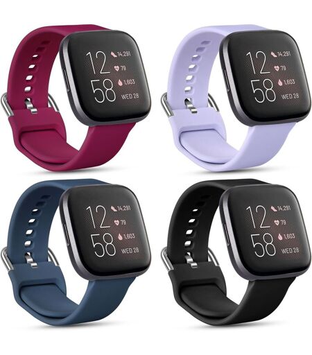 FACILE À INSTALLER ET PARFAITEMENT COMPATIBLE Ces bracelets de montre de rechange sont compatibles avec les montres intelligentes Fit-bit Versa 2/Fit-bit Versa/Fit-bit Versa Lite/Fit-bit Versa SE. Facile à installer et à retirer, aucun outil requis. (REMARQUE le produit n'inclut pas la montre intelligente Fit-bit Versa) MATÉRIAU CONFORTABLE Fabriqué en TPU doux, élastique et durable, il est facile à nettoyer, confortable à porter et respectueux de l'environnement pour la peau humaine, vous offrant une expérience confortable lorsque vous faites de l'exercice, dormez, etc. DEUX TAILLES DISPONIBLES La petite taille convient aux poignets de 5,5"" à 6,7"" (140 mm à 170 mm), et la grande taille s'adapte aux poignets de 6,7"" à 8,1"" (170 mm à 205 mm). Plusieurs trous réglables vous permettent d'ajuster librement la longueur et d'offrir à votre poignet un imum de confort et de respirabilité. PLUSIEURS COMBINAISONS DE COULEURS Plusieurs couleurs sont disponibles. Chaque couleur est tendance et donne à votre Fit-bit Versa une sensation élégante et haut de gamme. Décorez votre vie avec de la couleur. DESIGN SÉCURISÉ La boucle maintient votre bracelet Fit-bit Versa/Fit-bit Versa 2 solidement en place et maintient la longueur des sangles supplémentaires propre. Ne craignez plus de faire tomber votre montre intelligente Fit-bit Versa. ...