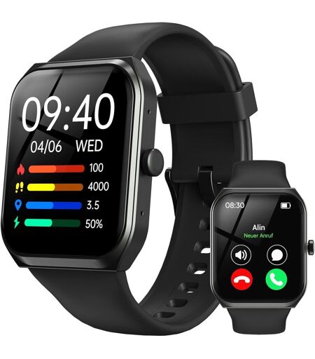 1,91"" Grand écran Coloré & Mes Notification 1.91 inch Full HD Touch Screen Women Men Connected Watch, lorsque votre téléphone portable reçoit un appel entrant, un mes texte, Facebook, Twitter ou un mes WhatsApp, la montre connectée homme femme vous alertera, vous ne manquerez aucune personne ou chose importante. Appel Bluetooth Montre connectée & Health Monitoring Vous pourrez vous connecter et passer des appels directement via la montre montre connectee, et il y aura des trous sonores car la montre a une fonction de conversation. Il n'est pas recommandé de porter la montre pendant une longue période en nageant ou en se baignant. En outre, la montre peut surveiller l'oxygène du sang, le sommeil, les données de fréquence cardiaque, toujours surveiller votre santé. 16+112 Modes de Mouvement & Mini-jeux Amusants La montre sport homme dispose de 16 modes de sport intégrés et de 112 modes de sport qui peuvent être activés grâce à OnWear Pro. OnWear Pro peut être utilisé pour lancer trois sports la course en extérieur, la marche et le cyclisme, qui peuvent être combinés avec le GPS du téléphone pour enregistrer le parcours sportif. La montre est équipée de 6 jeux solo Racing, 2048, Snake, Number Pusher, Colour Changing Cube et Othello. Custom Settings & 250+ Download OnWear Pro prend en charge les cadrans personnalisés et vous pouvez util r n'importe quelle image comme image de fond du cadran. La montre est livrée avec 5 cadrans intégrés. Avec un cadran à décompression dy que nouvellement développé. OnWear Pro dispose actuellement de plus de 250 cadrans basés sur le cloud qui peuvent être téléchargés et envoyés à la montre, et d'autres sont ajoutés en permanence. 30 Jours de Veille & 12 Mois de Garantie Batterie grande capacité 280mAh et puce Bluetooth basse énergie. Charge rapide magnétique, seulement 2h de charge, jusqu'à 7-10 jours d'utilisation, 30 jours de veille, très pratique pour les voyages d'affaires ou les voyages.La garantie du produit est étendue pour une période de 12 mois à compter de la date d'achat. Si vous avez des problèmes, veuillez nous contacter. ...