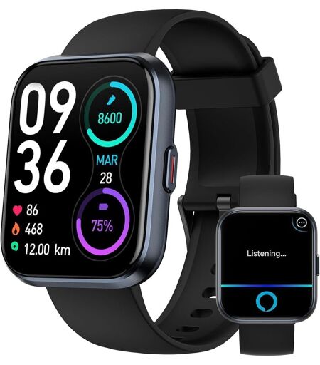 ¿ Montre connectée appel watch & Notification SMS/App Montre connectée femme prend en charge les appels Bluetooth 5.3, util des haut-parleurs et des microphones Hi-Fi, peut passer et recevoir des appels, et recevoir des SMS et des notifications SNS de diverses applications. Restez connectée en permanence et offrez une tranquillité d'esprit à vos proches qui se soucient de vous. Alexa intégré Combinant Alexa avec Fitness Tracker Watch, Smartwatch Clock dispose de deux microphones pour améliorer la capacité d'Alexa à vous entendre. Le nouveau design vous apporte une nouvelle expérience de vie. contrôlez vos appareils intelligents, définissez des al , consultez la météo ou faites tout ce que vous faites tous les jours avec Alexa. (Un compte et une application peuvent être requis) Suivi complet de la santé En plus de la surveillance 24 heures de la fréquence cardiaque, la montre intelligente Aeac peut effectuer une mesure de l'oxygène sanguin, ainsi qu'une surveillance du sommeil (sommeil profond/léger et temps de réveil) et du niveau de stress, pour vous aider à mieux comprendre votre état de santé général. ¿ Tracker d'activité etanche IP68 Avec l'app ""Veryfit"", la montre connectée de sport pour femme enregistre précisément vos données d'activité tout au long de la journée. Avec ses 110 modes de sport(marche, course, vélo, natation, football, tennis, yoga, etc.), pendant vos entraînements , la montre peut suivre avec précision les ies, la distance, les pas, le temps d'exercice, etc. Voir comment vous pouvez continuer à vous améliorer. Meilleur choix pour la montre de fitness sportive La montre de fitness sportive Aeac dispose de 110 modes sportifs différents tels que le football, la course à pied, le cyclisme, l'escalade, la natation, le pilates, la danse, le zumba, etc. La montre effectue une analyse professionnelle des données clés telles que la fréquence cardiaque, la vitesse et les ies brûlées, vous permettant ainsi une meilleure gestion de votre entraînement. Commencez votre nouvelle vie intelligente Fonction téléphone Bluetooth, lecture de musique, notification intelligente, suivi d'activité (pas, distance, ies), système d'exploitation français, 110 modes sportifs, étanche IP68, chronomètre, réveil, photographie à distance , prévisions météo, etc. ...