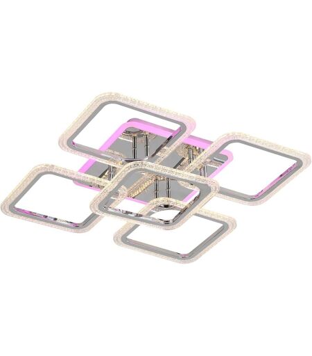 Plafonnier Led,Luminaires Intérieur Avec 5 Carrés Led,Éclairage De Plafond Design Coloré,Lustre Salon Moderne 80w,Luminaire Plafonnier Dimmable 3000k-6000k,56cm*56cm*12cm,Chromé