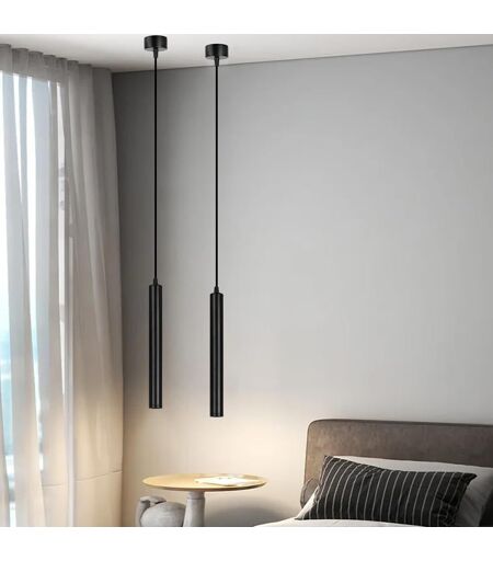 Lustre Cylindrique Noir, 2 Pieces Lustre Led, Blanc Chaud, 3000k, Pour Salon, Table De Salle À Manger, Comptoir De Hôtel, 30 Cm, Longueur Réglable, Moderne