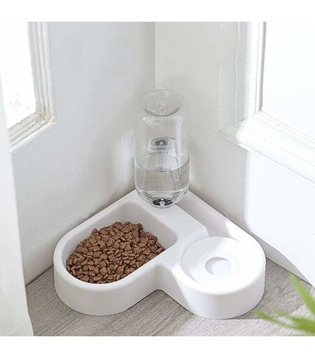 LONGZIMING 2 in 1 Distributeur de Nourriture Eau Fontaine Automatique pour Animaux, Anti Débordôment Abreuvoir et Alimentateur Croquettes Gamelle pour