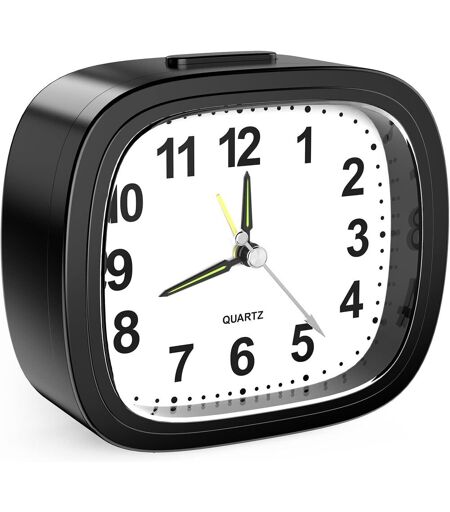 Mini Réveil Analogique Silencieux Sans Tic-Tac - Réveil Avec Fonction Snooze - Veilleuse - Fonctionne Avec Piles - Réveil Portable Pour Chambre À Coucher, Salon, Bureau, Voyage - Noir