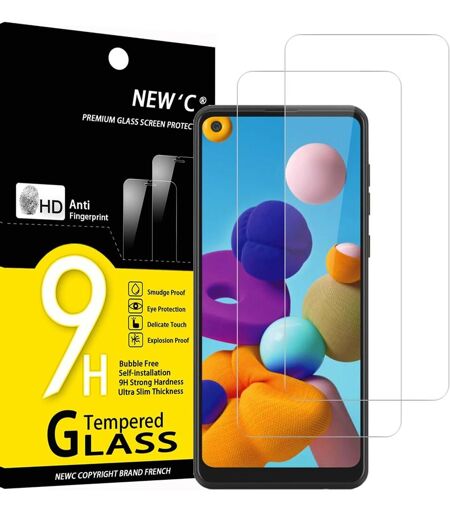 2 Pack Verre Trempé Samsung Galaxy A21, très grande dureté résiste aux égratignures jusqu' à 9H. Haute-réponse et une grande transparence. ATTENTION NON Compatible avec Samsung Galaxy A21s et A20e. ATTENTION Ce modèle en verre ne possède pas d'encoche au niveau de l'appareil photo, mais cela en gêne par la pr de photo et la qualité de l'image. Attention à bien nettoyer votre caméra avant l'installation du verre ! Fabriqué à partir de verre trempé premium haute qualité, 0,33 mm épaisseur et des bords arrondis. Solution de protection idéale Extrêmement dure, protège l'écran du téléphone des chocs et des dégâts. Oléophobe il a un revêtement oléophobique qui empêche les empreintes digitales et d'autres contaminants et rend le film facile à nettoyer. Remarque C'est parce que l'écran de Samsung Galaxy A21. est avec les bordures incurvés, donc le protecteur ne recouvre pas complètement l'écran, mais seulement la zone plate. Protection d'écran en Verre Trempé NEW'C, Touche délicate il est revêtu sur le dos avec un adhésif de silicium solide qui rend l'installation facile et attache le film fermement afin de ne pas influer sur la sensibilité de l'écran tactile. ...