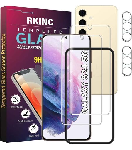 Compatibilité Conçu pour Samsung Galaxy S24. Il s'adapte parfaitement à votre téléphone. Garantie à Vie Si le problème persiste, contactez-nous via (contacter le vendeur) pour un remboursement complet ou un remplacement sans retour. Haute Transparence 0,33 mm ultra-mince, haute clarté, haute transparence et haute sensibilité tactile. Il assure la beauté e de l'écran. Protection Contre Les Rayures et Les Chocs La dureté 9H et le protecteur d'écran en verre trempé de haute qualité sont impossibles à rayer et aideront à protéger votre écran contre les éclats. Conception Conviviale Facile à installer. Sans bulles, étanche, anti-empreintes digitales et anti-poussière. Profitez de votre écran comme si le protecteur d'écran n'était pas là. Contenu de l'emballage [lot de 2+2] protecteur d'écran en verre trempé, chiffon de nettoyage et dépoussiérant. Compatible Avec les Coques Il y a suffisamment d'espace autour des bords pour que votre coque s'enroule autour des bords de votre mobile. Compatible avec la plupart des coques de téléphone. ...