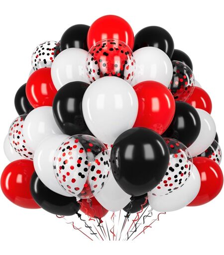 60 Pièces Ballons Noir Rouge, 12 Pouces Mat Noir Rouge Blanc Latex Ballon Avec 2 Rubans Et Ballons Confettis Pour Garçons Filles Hommes Femmes Anniversaire Baby Shower Mariage Fiançailles Fête Casino