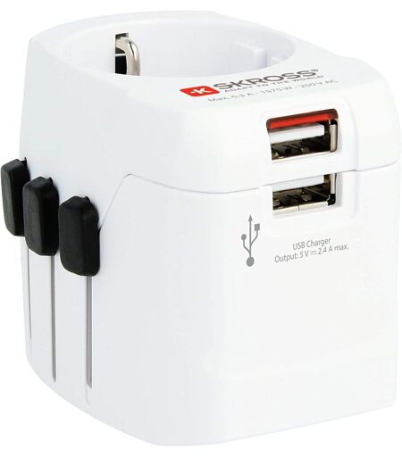 SKROSS Pro Light USB Antichoc - SÉCURITAIRE POUR LES ENFANTS. Plus compact le plus petit adaptateur de voyage universel à 3 broches avec chargeur USB intégré. DESCRIPTION - Le PRO Light USB assure une connexion simple et sûre des appareils 2 et 3 pôles d'Europe (Schuko & Euro) dans plus de 100 pays. Capable de gérer jusqu'à 1575 W de puissance, vous pouvez même connecter des appareils puissants comme des ordinateurs portables ou des sèche-cheveux de voyage. C'est le moyen le plus sûr de connecter des appareils dans le monde entier. De plus, les deux ports USB fournissent suffisamment d'énergie pour charger facilement deux appareils USB, même si un autre appareil est connecté via l'adaptateur en même temps. SPÉCIFICATIONS TECHNIQUES Conçu en Suisse ¿¿Convient aux équipements avec pr s 2 et 3 pôles Pr s d'entrée Europe (Schuko & 2 pôles Euro) Pr s de sortie USA, UK, Australie/Chine Tension d'entrée 100 V¿250 V Charge imale 6,3 A Puissance nominale 100 V¿630 W / 250 V¿1 575 W Fusible intégré T 6,3 A Sortie USB 5 V / 2,4 A partagés ...