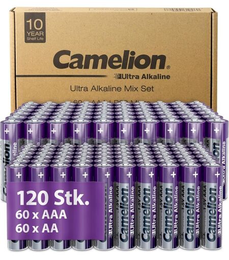 Camelion Hamiltion-Lot De 120 Piles Ultra Alcalines Aa-Piles Aaa-Durée De Vie De 10 Ans-Respectueuses De L'Environnement-Piles Aa-Piles D'Appareils Photo Numériques-Éclairage De Noël (60 X Aa/60 X