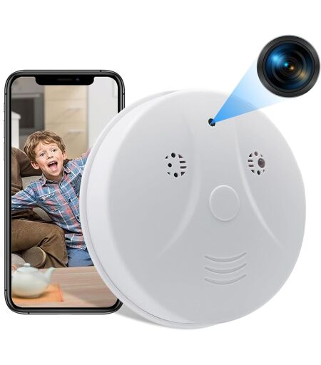 Caméra Cachée avec Détecteur de Fumée cette mini caméra wifi a un design unique avec l'apparence d'un détecteur de fumée, et fonctionne comme une caméra cachée wifi adaptée à la surveillance de la sécurité de votre maison/bureau (pas de fonction d'alarme de détecteur de fumée) Caméra WiFi HD 1080P cette caméra cachée wifi détecteur de fumée est équipée d'un objectif hd, enregistrant des vidéos en hd 1920x1080p pour vous ; vous pouvez regarder la vidéo en temps réel sur votre smartphone après avoir configuré votre Wi-Fi domestique Vision Nocturne la mini caméra cachée du détecteur de fumée est équipée de 4 lumières infrarouges invisibles de vision nocturne qui permettent d'enregistrer dans la nuit, la distance de vision nocturne est d'environ 2 à 3 mètres Alarme de Détection de Mouvement Intelligente la caméra cachée micro wifi dispose d'une détection intelligente de mouvement, elle capture toute image suspecte lorsque vous activez la détection de mouvement ; Cette caméra espion wifi supporte l'enregistrement en boucle, carte SD jusqu'à 128GB (non incluse) Convient à de Nombreux Scénarios facile à installer et à connecter, vous pouvez fixer la caméra wifi du détecteur de fumée au mur ou au plafond ; Connectez la caméra wifi domestique à l'alimentation électrique pour des enregistrements continus 24/7 directement sur la carte SD ou util z le stockage payant iCloud ...