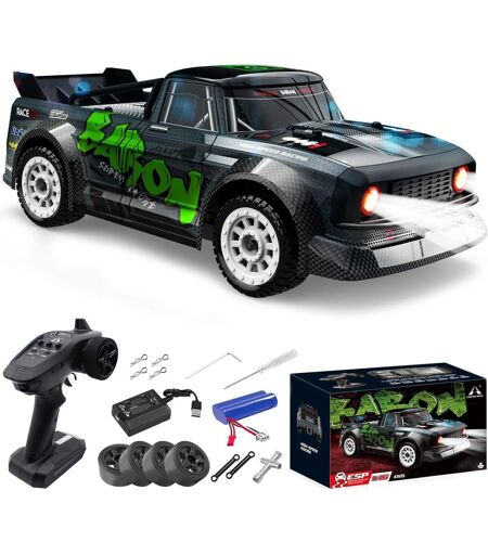 4 roues motrices et vitesse élevée équipée d'un système 4WD et de moteurs puissants, cette voiture a une force et une propulsion puissantes. Sa vitesse atteint jusqu'à 20 MPH (30+ KM/H) et vous offre une expérience de course formidable. Télécommande de 2,4 GHz la fréquence de la télécommande est de 2,4 GHz, elle a une longue portée (jusqu'à 160 pieds) et une bonne capacité anti-brouillage, ce qui convient à l'utilisation de plusieurs voitures en même temps sans interférences. Lorsque les enfants jouent ensemble avec les jouets, il y a plus de plaisir. Commande proportionnelle de l'accélération et de la direction le système de télécommande sensible comporte une fonction de commande proportionnelle de l'accélération et de la direction. Les joueurs ont la possibilité d'ajuster et de contrôler finement les vitesses et la direction. Cela offre davantage de possibilités d'exploitation et de jeu. Matériaux de haute qualité la voiture a un corps en plastique de haute qualité et des roues en caoutchouc, elle est très solide et durable. Les ressorts et les arbres de transmission solides sont en métal et sont extrêmement durs et résistants aux chocs. Elle est livrée avec 2 jeux de pneus Les pneus de rallye sont adaptés à l'extérieur, les autres sont destinés à la dérive à l'intérieur. Stabilité et sécurité grâce à la suspension indépendante et au programme électronique de stabilité, il a une excellente stabilité au galop. La protection de la batterie contre les surcharges et les surintensités assure la sécurité pendant le jeu et la charge. Et lorsque la puissance de la batterie est faible, la vitesse imale est réduite de moitié afin de protéger la batterie et de prolonger sa durée de vie. La voiture miniature 1/16 dispose d'une batterie 7,4V 1200 mAh et offre 20 minutes de temps de jeu. C'est un excellent cadeau pour les enfants. Attention Contient un jouet. La surveillance d'un adulte est recommandée Attention Ne convient pas aux enfants de moins de 3 ans. À util r sous la surveillance d'un adulte Attention Ne doit pas être utilisé par des enfants de plus de 36mois. ...