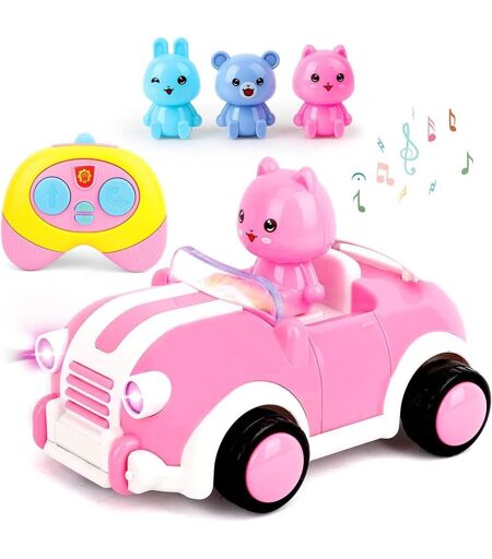 Hamiltion-Télécommande Voiture Toy Cartoon Radio Télécommande Télécommande Rc Voiture Avec Musique, Lumières Et Cadeaux D'Animaux Pour Les Tout-Petits Garçons Filles Bébés Tout-Petits (Rose)